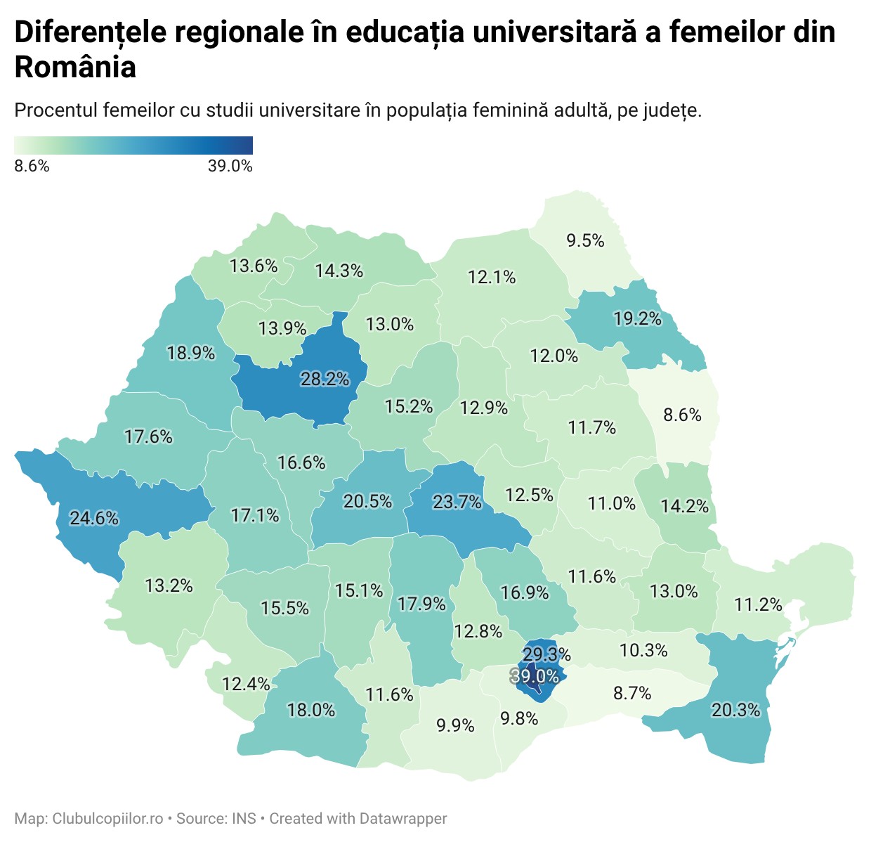 Potrivit unui sondaj al clubul copiilor, în acest peisaj național, județul Iași își confirmă statutul de centru de greutate regional. Aproximativ 20% dintre femeile din județ au studii universitare, o cifră care plasează Iașul în clubul select al polilor de dezvoltare, alături de București (39%), Ilfov (29,3%) și Cluj (28,2%).