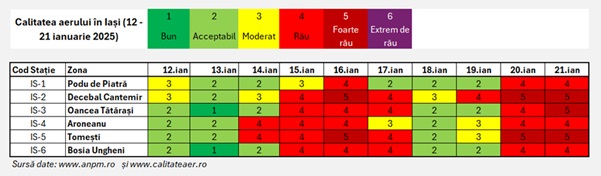 Cu toate acestea, principala problemă rămâne poluarea cu particule în suspensie (PM10), în special în stația de monitorizare a aerului din Podul de Piatră (IS-1), unde s-au înregistrat 43 de depășiri ale valorii limită zilnice de 50 µg/m³, față de numărul maxim permis de 35 de depășiri într-un an calendaristic, ceea ce indică faptul că Primăria Iași nu a reușit să gestioneze eficient sursele de poluare din centrul orașului.