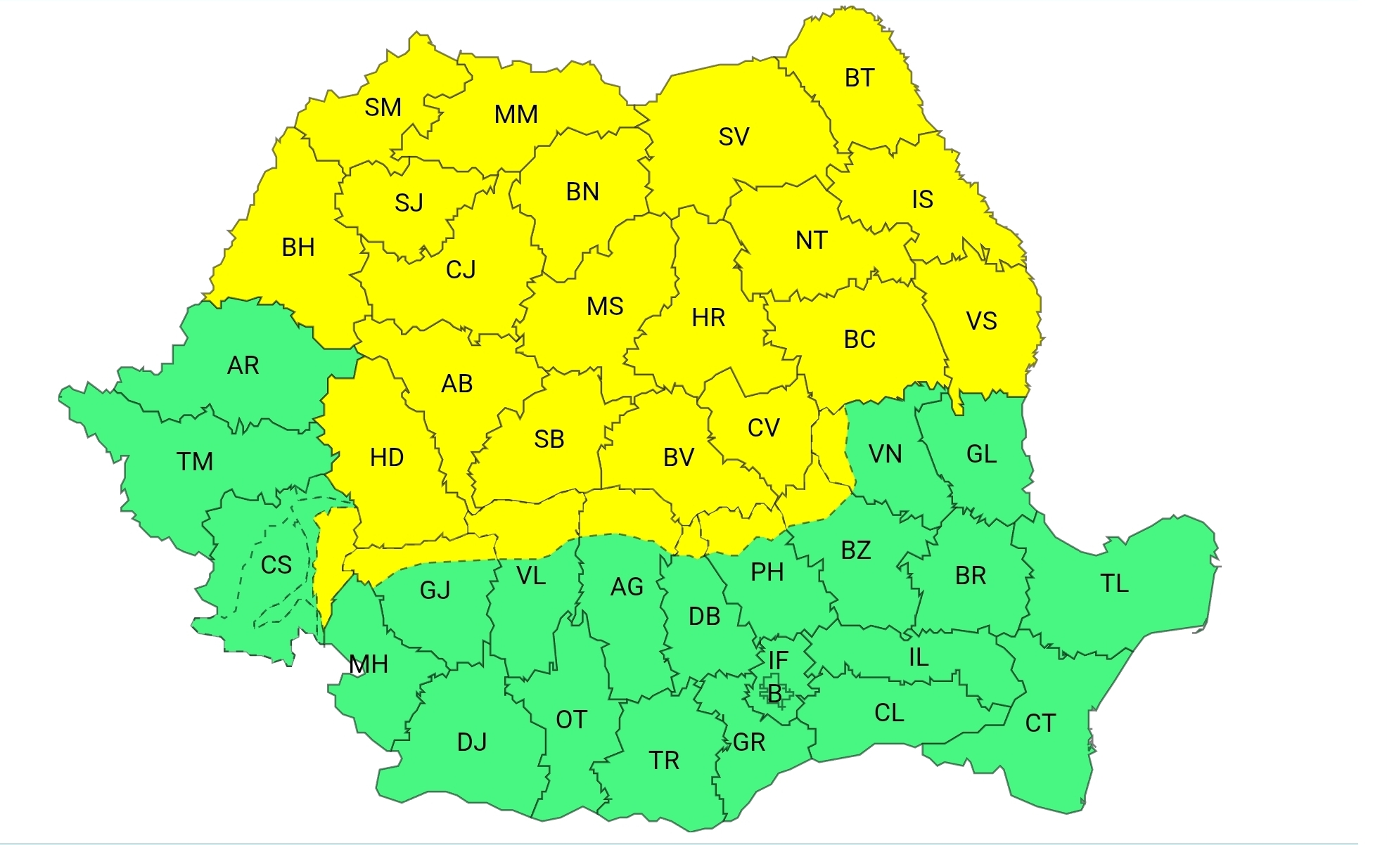 Administrația Națională de Meteorologie (ANM) a emis o informare meteorologică și o atenționare Cod Galben care vizează intensificări ale vântului, vreme rece și precipitații mixte, fenomene ce vor afecta cea mai mare parte a țării, inclusiv regiunea Moldovei, în intervalul 6-9 aprilie. În intervalul 6 aprilie, ora 12:00 – 6 aprilie, ora 21:00, este în vigoare o avertizare de tip Cod Galben. Conform ANM, fenomenul vizat este reprezentat de intensificări susținute ale vântului.