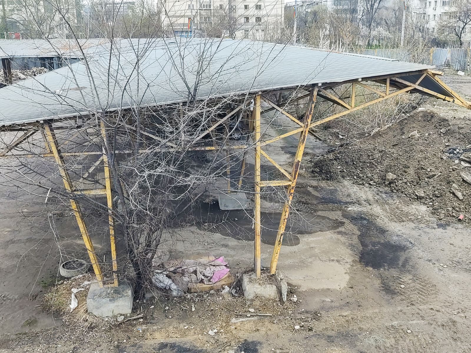 - Șantierul perpetuu al marilor antreprenori: Marile companii de construcții care domină lucrările publice din oraș, precum SC Conest SA și SC Symmetrica SRL, și-au stabilit aici veritabile baze de operațiuni. Spațiul este un depozit gigantic pentru excavatoare, șine de tramvai, conducte și munți de paleți cu pavele. Rezultatul vizual este dezolant, specific unei zone industriale abandonate, generând constant noroi și praf care se ridică peste bulevardele adiacente.