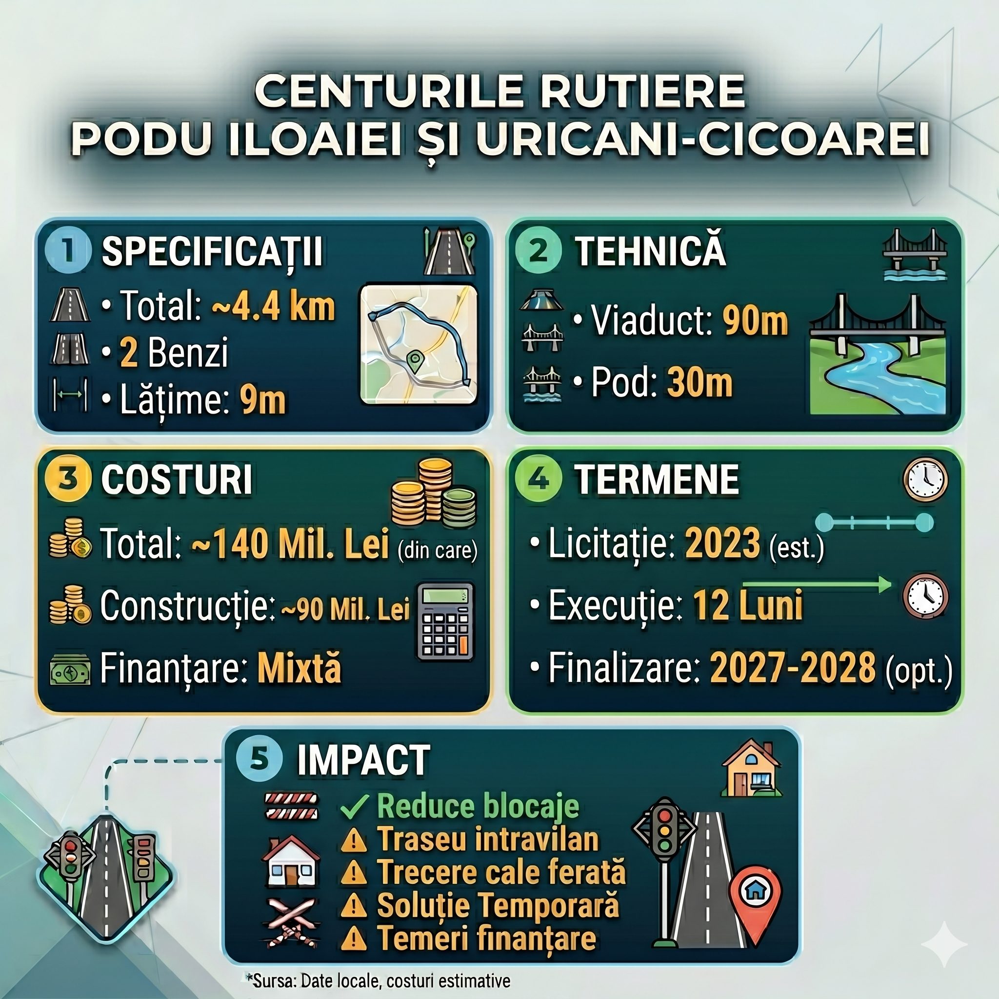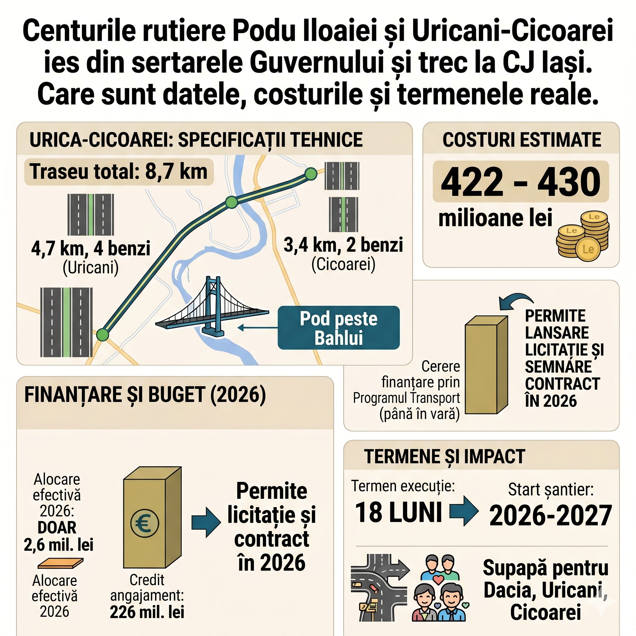 • Costuri: Valoarea estimată a lucrărilor este uriașă, situându-se între 422 și 430 de milioane de lei.