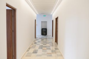 - Climatizare și „creier” digital: A fost implementat un sistem modern de climatizare (tip VRF) cu un consum redus, controlat printr-un sistem inteligent de management al clădirii (BMS – Building Management System). Toate instalațiile electrice au fost schimbate și trecute pe soluții LED.