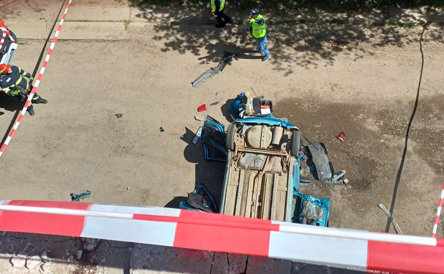 - Colapsul elementelor de siguranță: În urma coliziunii, autoturismul a fost proiectat spre marginea carosabilului. Balustrada metalică a cedat instantaneu sub forța impactului, neopunând practic nicio rezistență, iar mașina s-a prăbușit de pe pod.