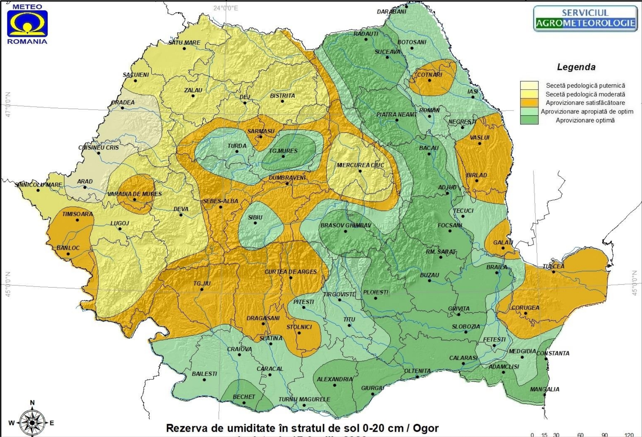 Rezerva de umiditate a stratului de sol 0-20 cm, 17 aprilie 2026, Sursă foto: ANM