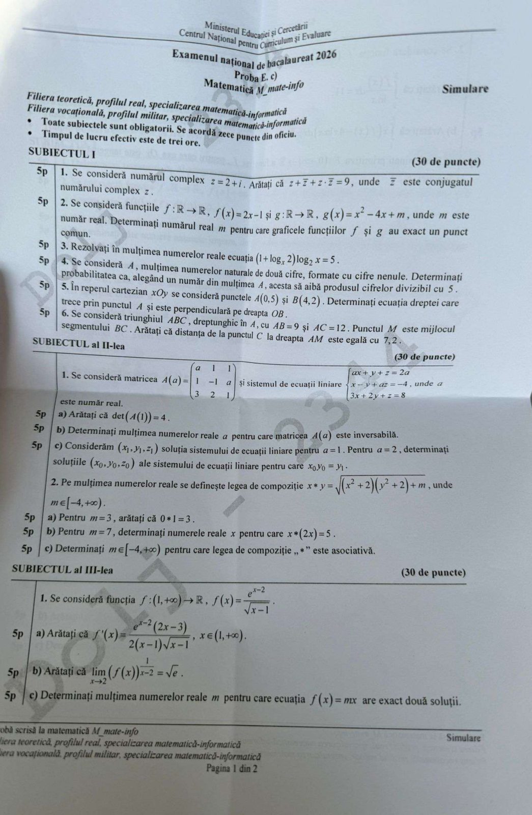 - Subiectul I: Itemi cu răspuns scurt sau alegere multiplă, axați pe conceptele fundamentale de algebră și geometrie. Această secțiune evaluează competențele de bază necesare pentru atingerea pragului de promovabilitate.