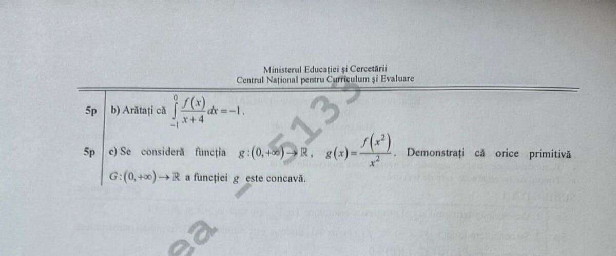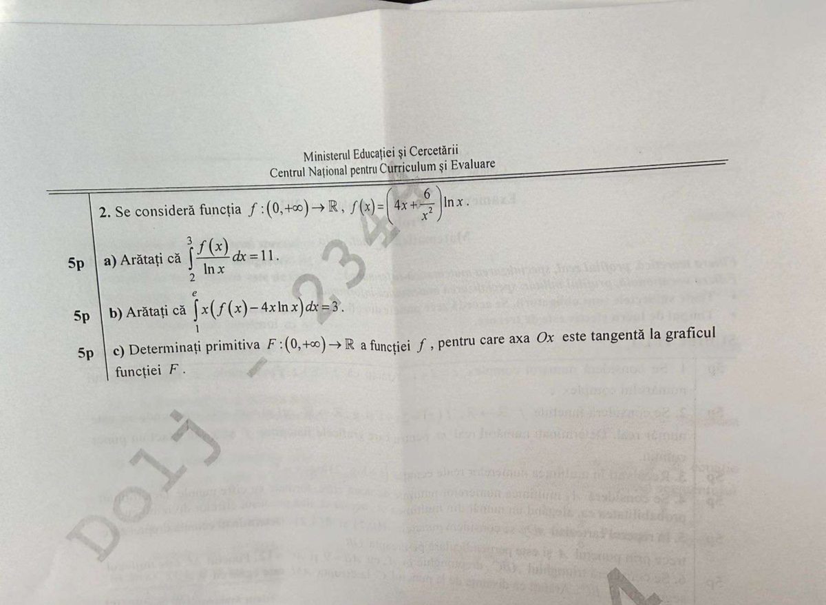 - Subiectul III: Exerciții de analiză matematică (derivate și integrale), cu un grad ridicat de complexitate, menite să evalueze capacitatea de sinteză și raționament logic avansat.