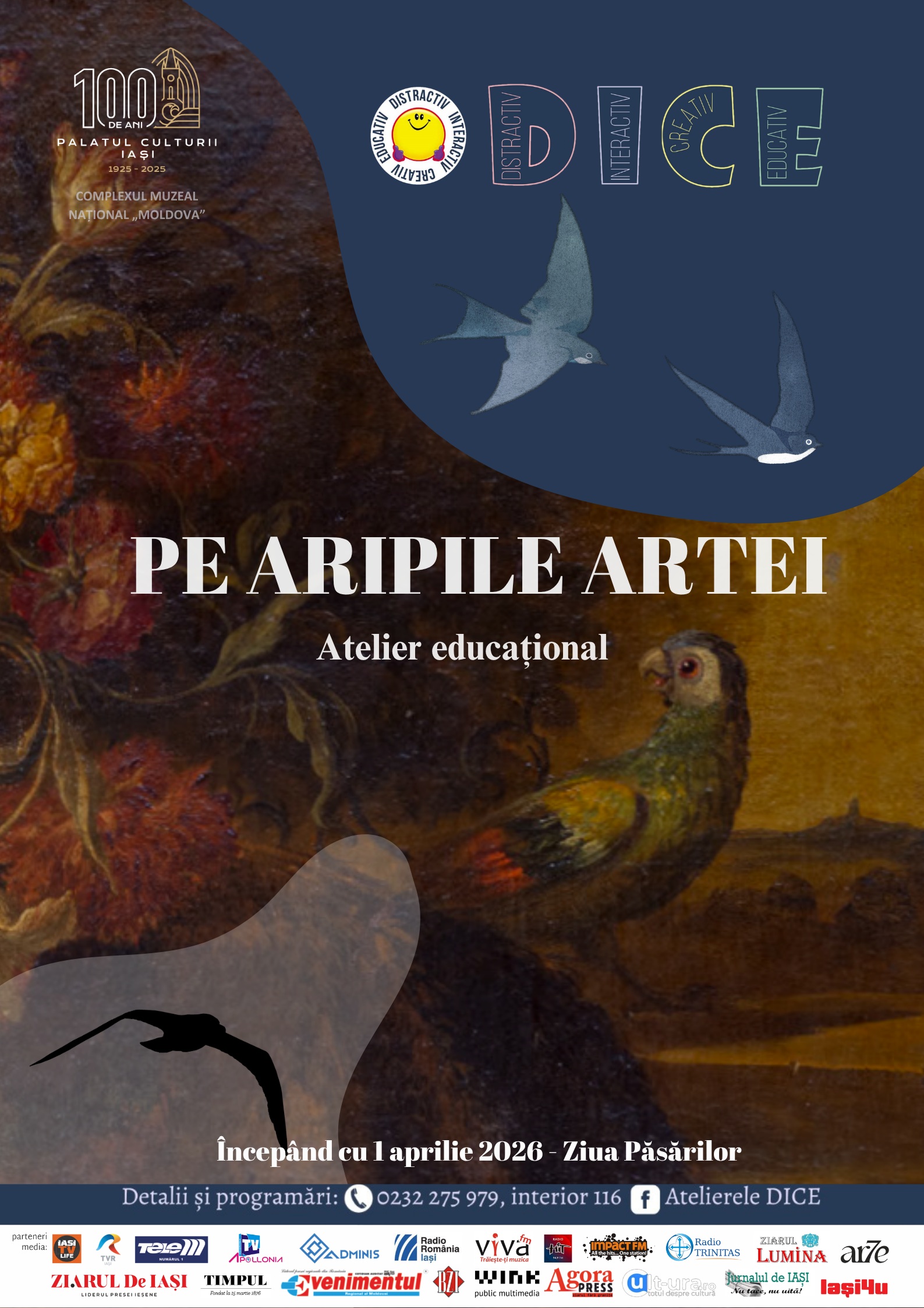 Într-o eră a digitalizării accelerate, în care atenția tinerilor este disputată de ecrane, Complexul Muzeal Național „Moldova” (CMNM) Iași face un pas strategic spre reîmprietenirea publicului tânăr cu spațiul muzeal. Prin Secția Mediere culturală, Proiecte și Marketing, instituția reia seria atelierelor DICE sub genericul „Pe aripile artei”, un proiect care transformă sălile solemne ale Muzeului de Artă în spații de dialog și creație interactivă. Dincolo de simplul act de a picta sau a desena, aceste ateliere reprezintă o soluție la o problemă cronică a sistemului educațional românesc: lipsa contactului practic și senzorial cu patrimoniul cultural.