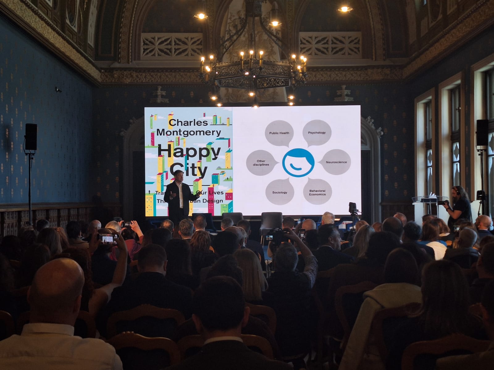 În prezentarea sa susţinută la TILIA, intitulată „Ştiinţa oraşelor fericite şi bunăstarea oamenilor”, Charles Montgomery argumentase anterior că „designul urban dictează comportamentul, iar oraşele pe care le construim astăzi ne pot apropia sau, dimpotrivă, ne pot izola”, iar „atunci când punem maşinile în centrul oraşului, pierdem spaţiu, libertate şi, în cele din urmă, fericire”. Urbanistul a dat drept exemple transformarea Times Square din New York, îndepărtarea maşinilor din jurul şcolilor din Paris şi ideea cartierelor fără parcări, ca modele prin care tehnologia şi mobilitatea alternativă pot recupera spaţiul urban pentru oameni. Designul dictează comportamentul: Atunci când designul urban prioritizează mașinile, cetățenii pierd spațiu, libertate și, în final, bunăstare. Exemplul transformării Times Square din New York sau eliminarea mașinilor din jurul școlilor din Paris sunt dovezi că spațiul recuperat este imediat asimilat de oameni.