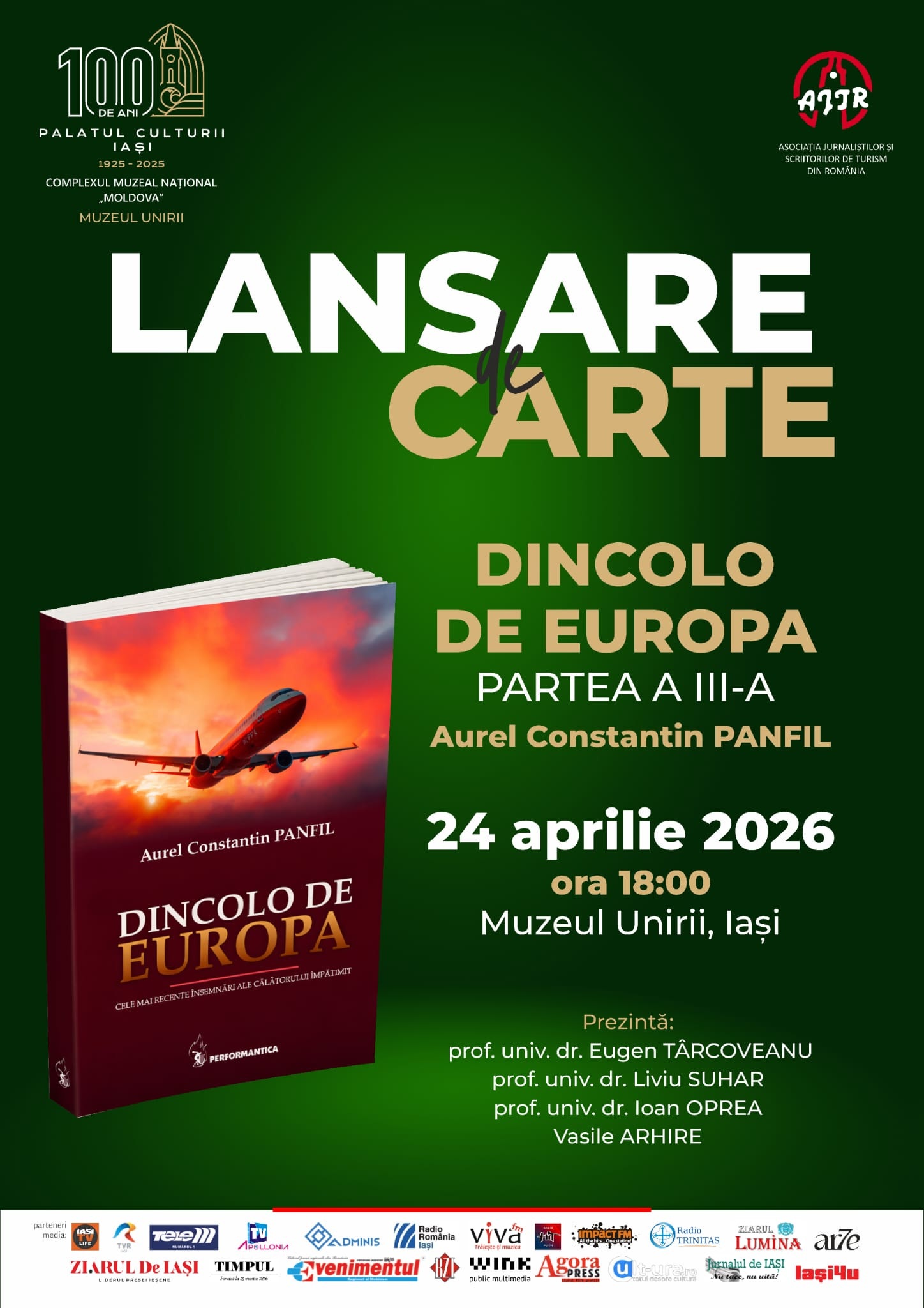 Vineri, 24 aprilie 2026, începând cu ora 18:00, Muzeul Unirii din Iași găzduiește lansarea celei de-a treia părți a volumului „Dincolo de Europa”, semnat de dr. Aurel Constantin Panfil. Într-o perioadă în care consumul de imagini turistice este dominat de formate scurte pe rețelele sociale, publicarea unui jurnal de călătorie tipărit ridică o temă relevantă: menținerea interesului pentru observația directă, pe termen lung, asupra unor spații geografice și culturale complexe. Evenimentul este organizat de Complexul Muzeal Național „Moldova” Iași, în parteneriat cu Asociația Ziariștilor de Turism din România.