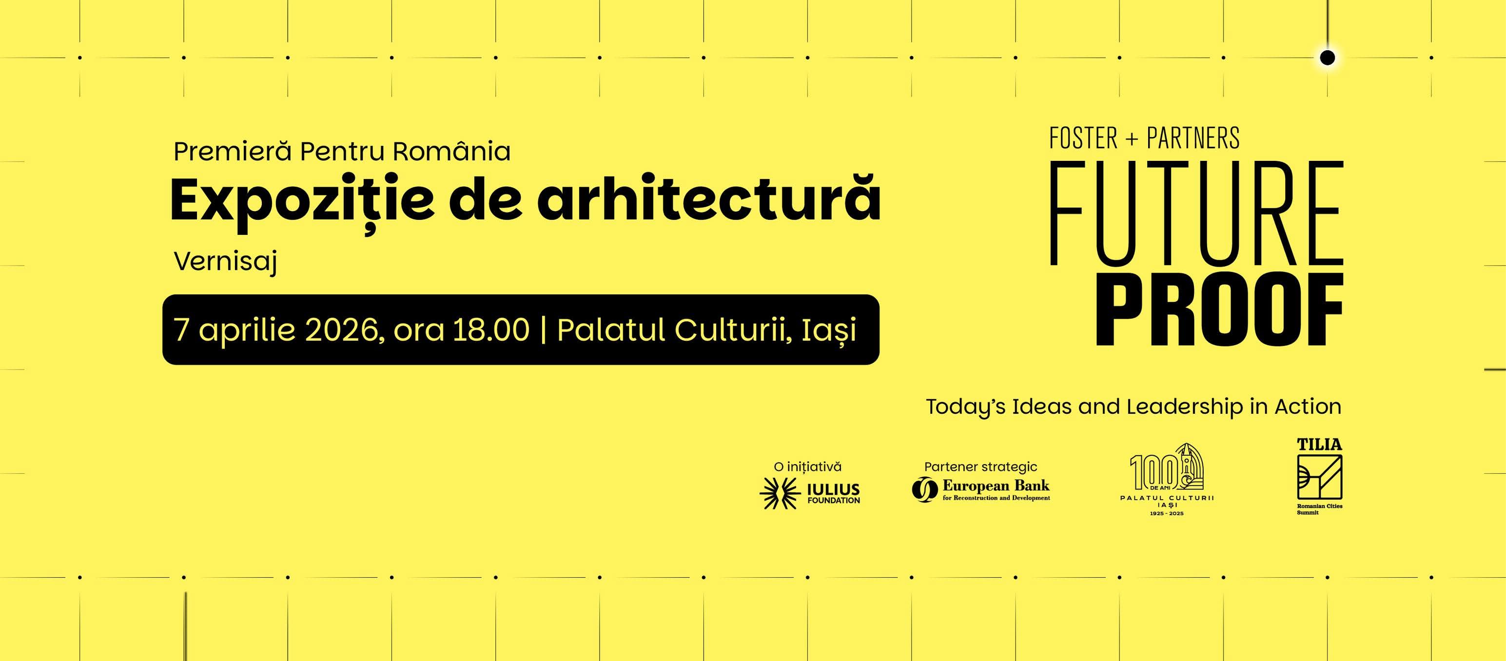 România găzduiește, în premieră, o expoziție semnată de biroul britanic de arhitectură și urbanism Foster + Partners, eveniment programat la Iași. Începând cu 7 aprilie 2026, Palatul Culturii va găzdui expoziția „Futureproof”, parte a primului summit urbanistic „Today’s Ideas and Leadership In Action – TILIA”. Evenimentul prezintă publicului concepte aplicate de reziliență urbană, eficiență energetică și planificare a spațiului public, extrase dintr-un portofoliu internațional întins pe o jumătate de secol.