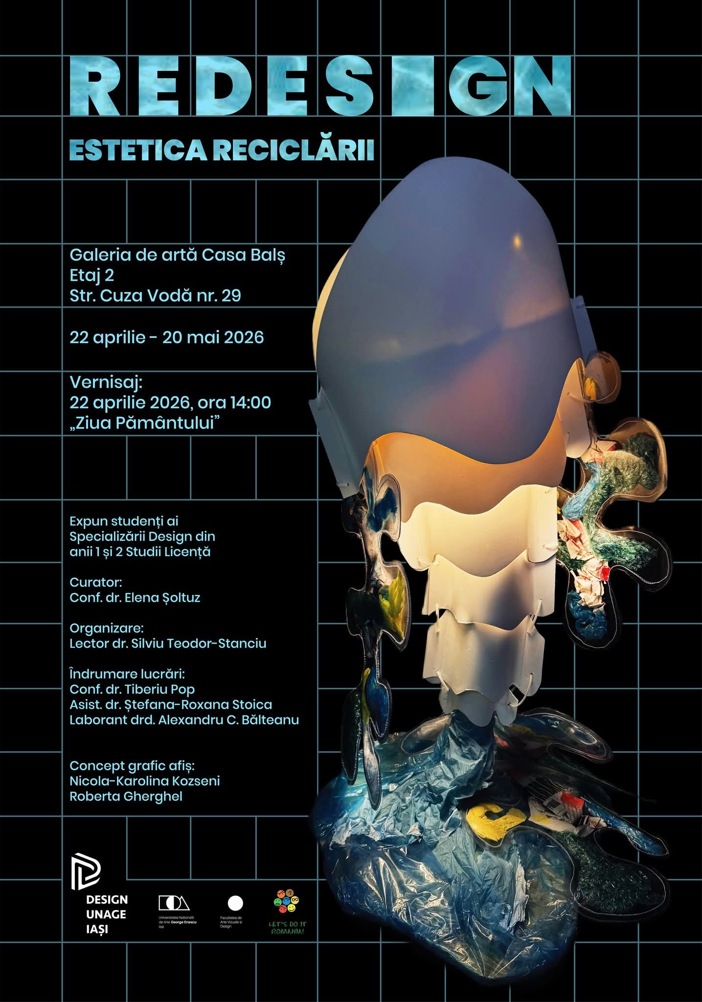 Pe fondul discuțiilor globale despre gestionarea resurselor și reducerea amprentei de carbon, mediul academic ieșean propune o evaluare a potențialului funcțional al materialelor reciclabile. Astăzi, 22 aprilie 2026, cu ocazia Zilei Pământului, Specializarea Design din cadrul Universității Naționale de Arte „George Enescu” (UNAGE) Iași deschide expoziția „Redesign – Estetica reciclării”. Găzduit de Casa Balș, evenimentul prezintă rezultatele unui demers de cercetare aplicată care vizează integrarea principiilor eco-designului în procesul de creație timpurie a viitorilor specialiști.