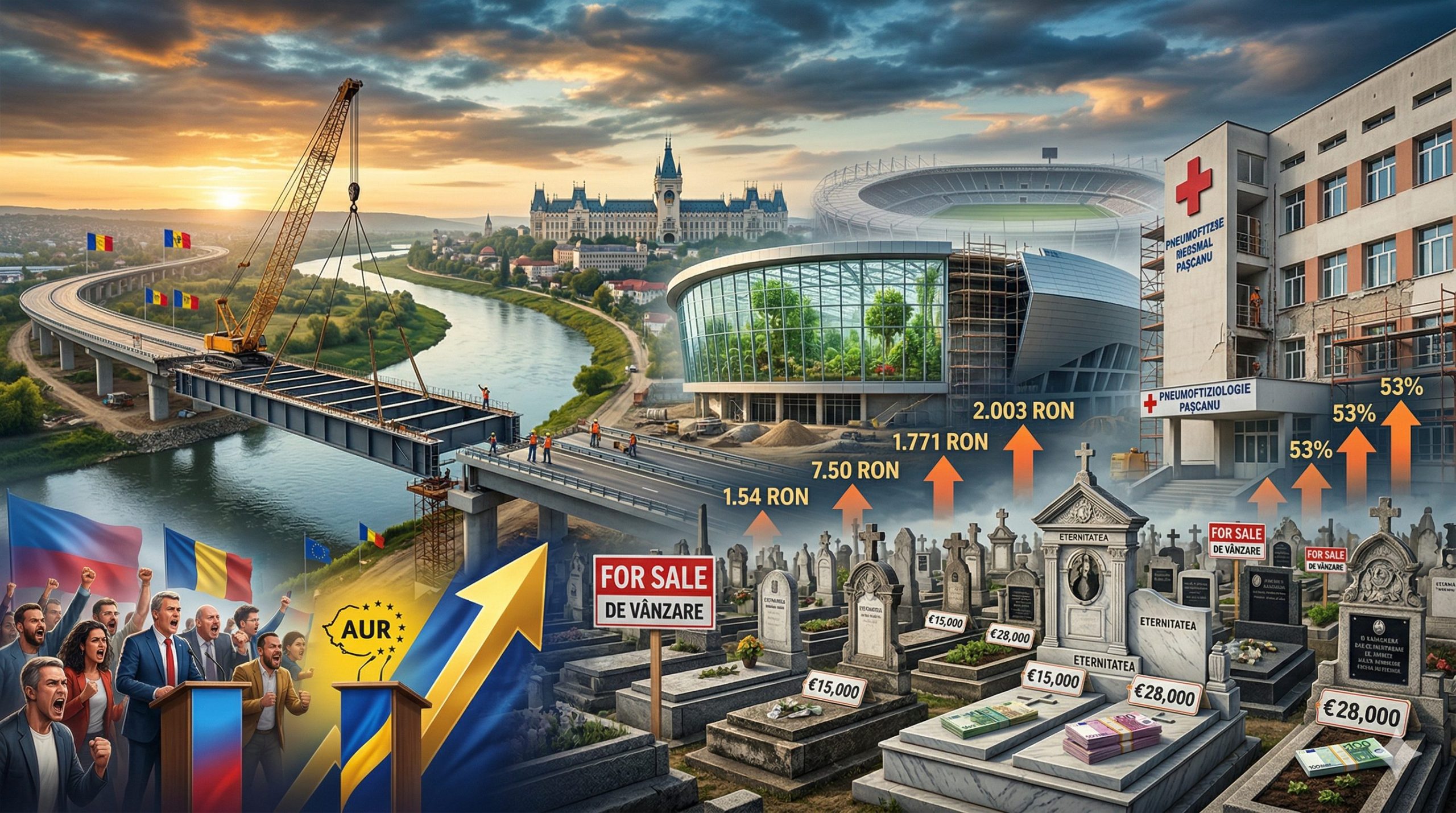 Agenda publică a acestei săptămâni a fost dominată de evoluții majore în infrastructura regională, decizii de recalculare a costurilor pentru proiectele locale și analize sociologice privind starea electoratului. Pe malul Prutului, prima conexiune rutieră la standard de autostradă cu Republica Moldova intră într-o nouă etapă de execuție. În plan local, administrația ieșeană se confruntă cu necesitatea actualizării bugetelor pentru Sala Polivalentă și Spitalul Clinic de Pneumoftiziologie, ambele proiecte înregistrând creșteri semnificative de costuri. Totodată, o analiză a pieței secundare a locurilor de veci din Iași indică tranzacții cu sume care concurează cu sectorul imobiliar rezidențial.